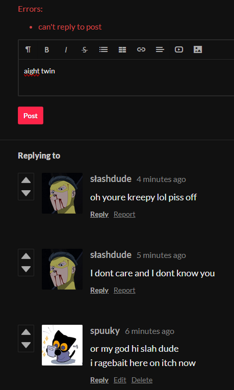 The entire part said I called you annoying and the r slur so no your not else edit that fucking sentence